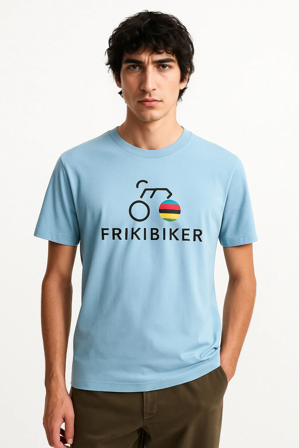 Camiseta Frikibiker Modelo 1, logo pequeño.